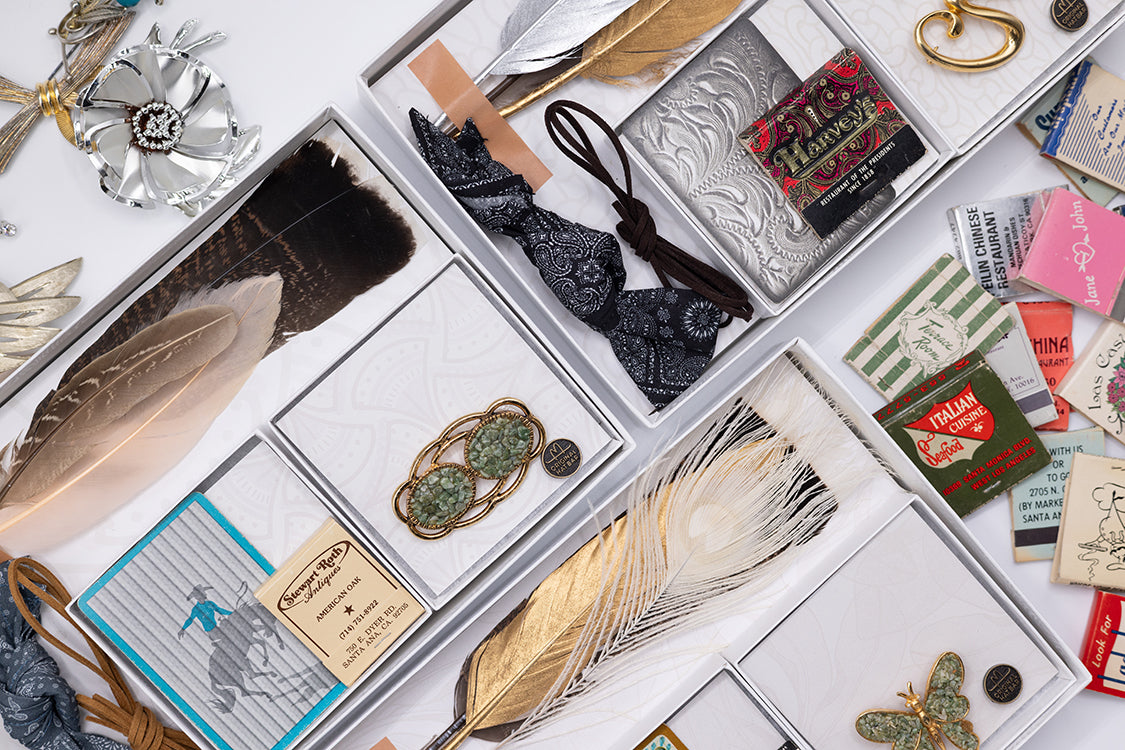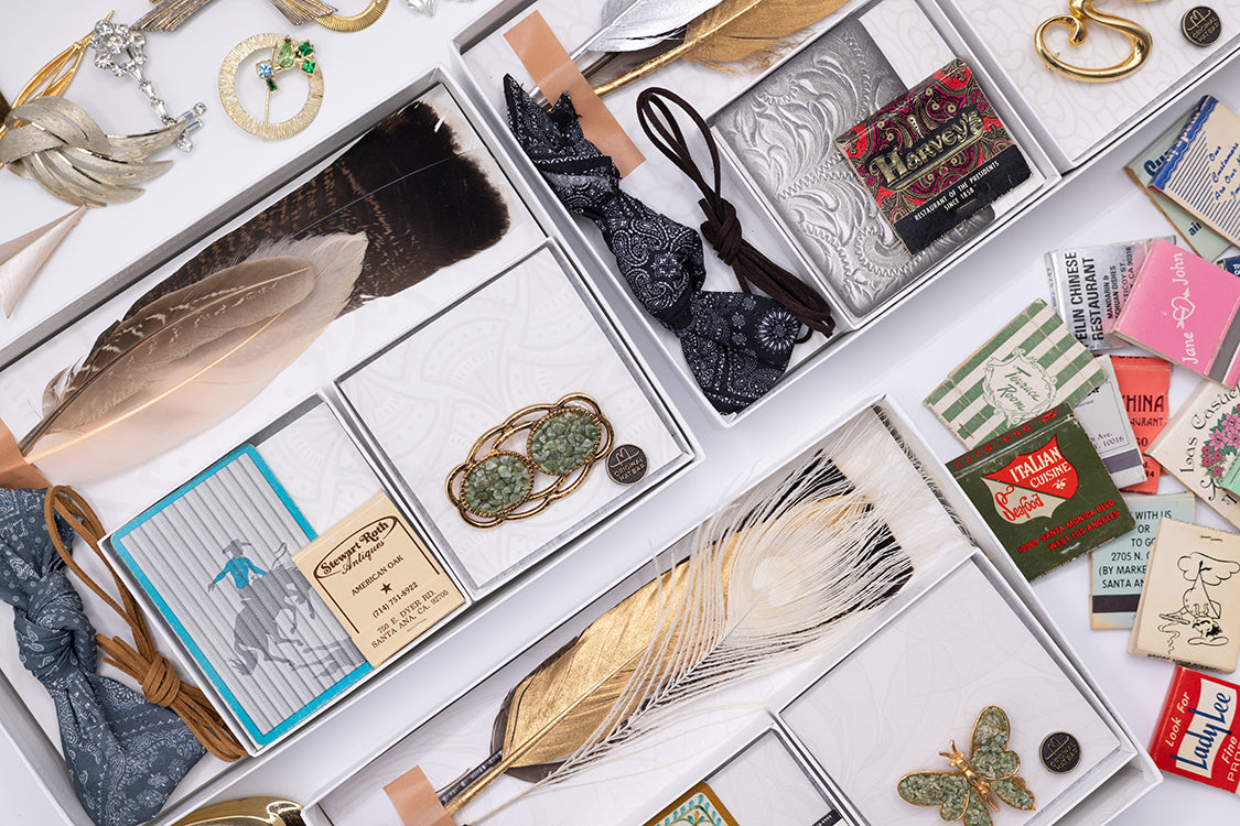 Our custom, one-of-a-kind, hat styling kits are designed for hat lovers to easily decorate the brim of their dreams. No two kits are the same and feature new, vintage and handmade items inspired by our stores' beautiful hat bars.